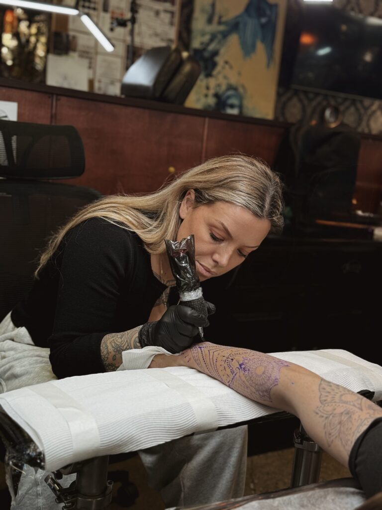 Surrounded by an amazing team that feels like family, Hollie thrives in a chill, fun environment—after all, who else gets to go to Japan for a work trip? When she’s not creating art, you can find her dancing at festivals, soaking up the sun at the beach, or indulging her love for travel and good food. Follow Hollie on her artistic journey as she continues to bring her unique vision to life, one tattoo at a time!