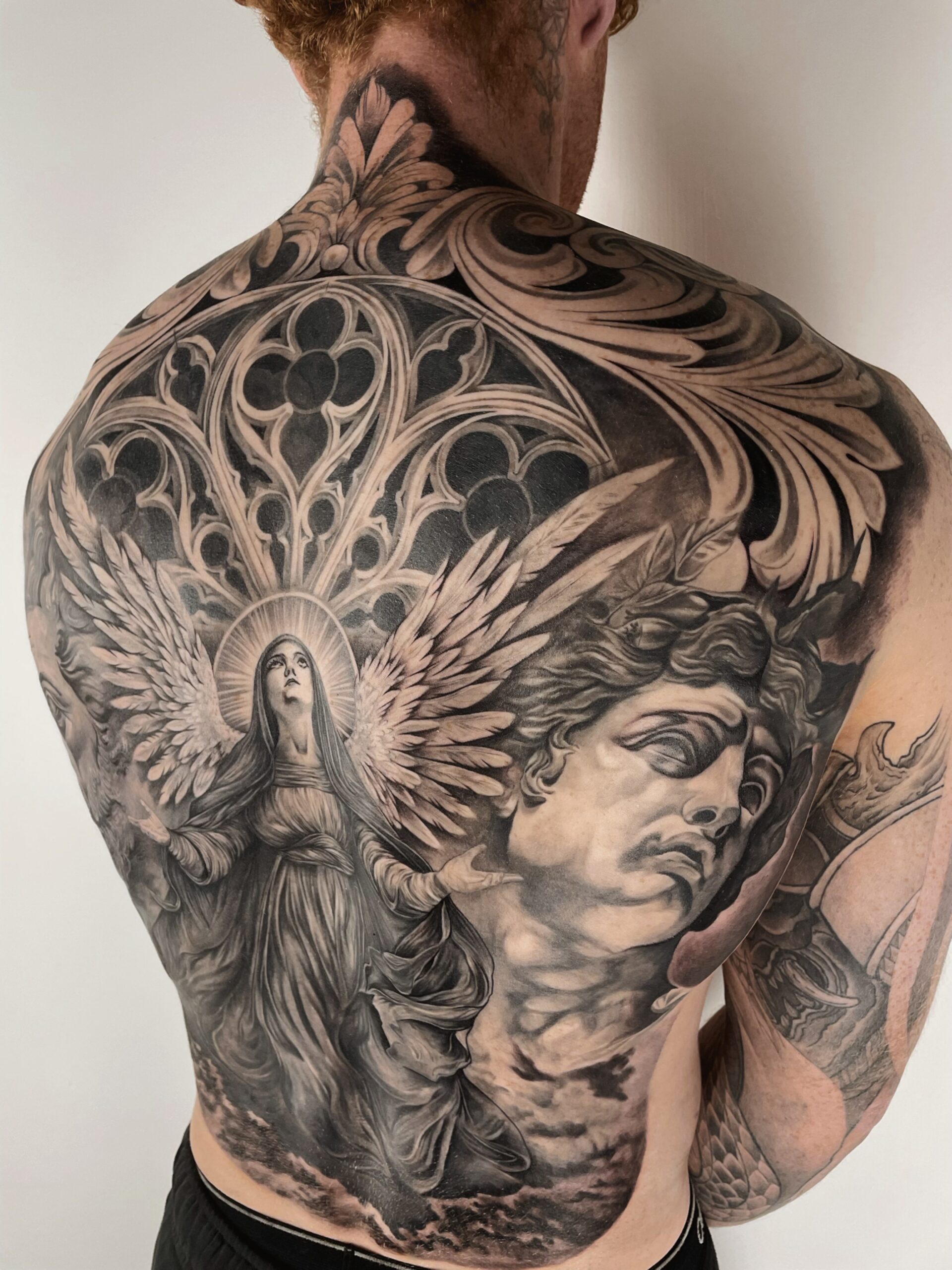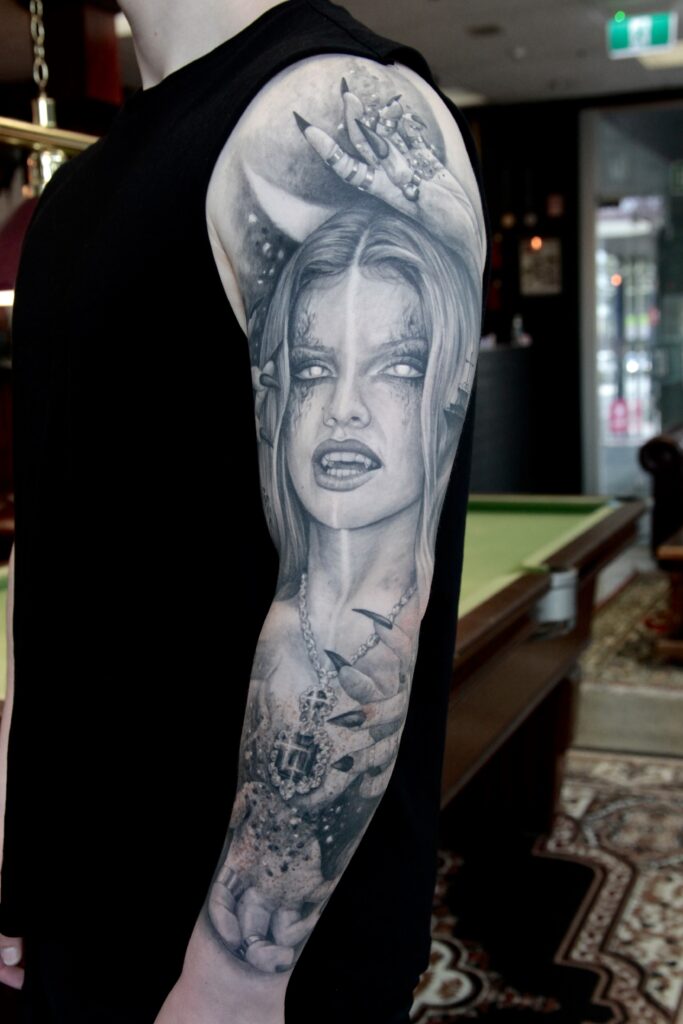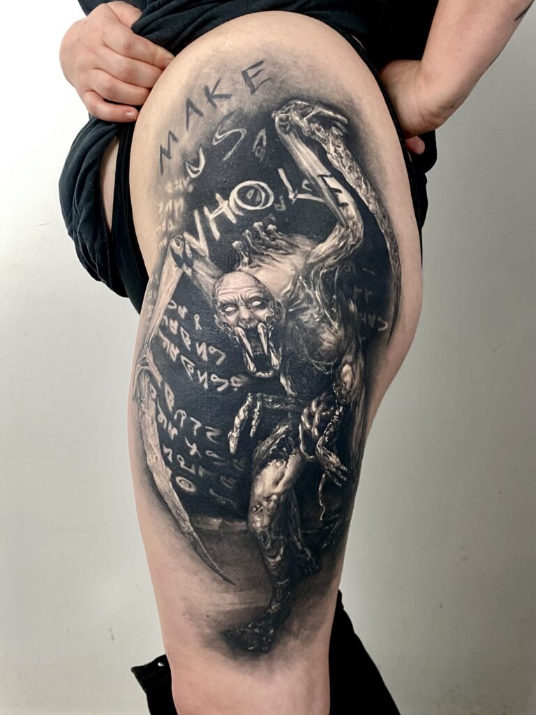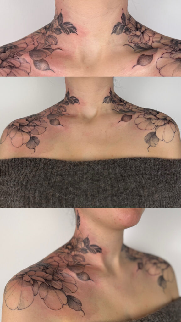 Marie’s tattoo style is wonderfully versatile, and she enjoys creating a wide range of designs; however, she has a particular passion for Gothic Blackwork and Realism, blending dark, detailed elements with striking artistic precision.