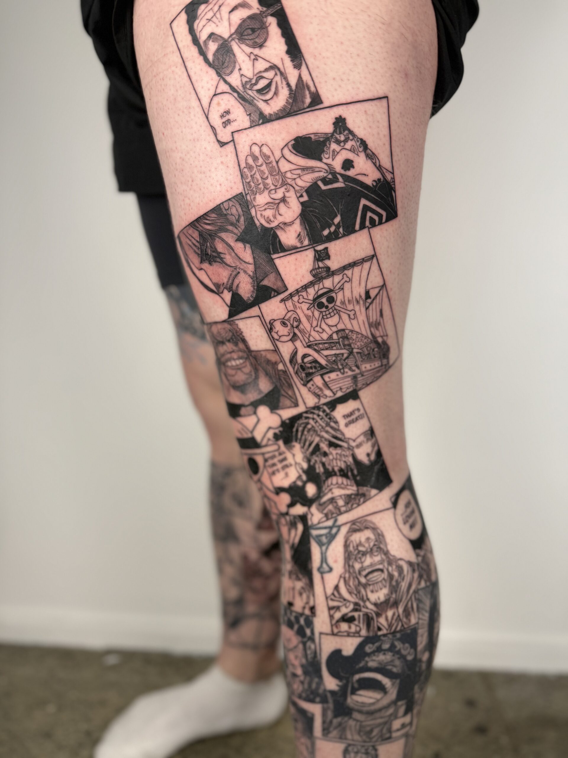 Fraser’s tattoo style is a blend of anime, delicate feminine designs, fine line work, and intricate detail, reflecting his unique artistic flair. Alongside his craftsmanship, he’s known for his bad jokes and questionable advice.
